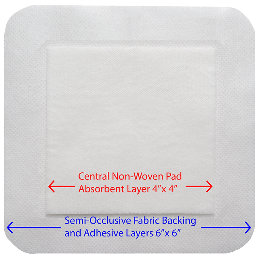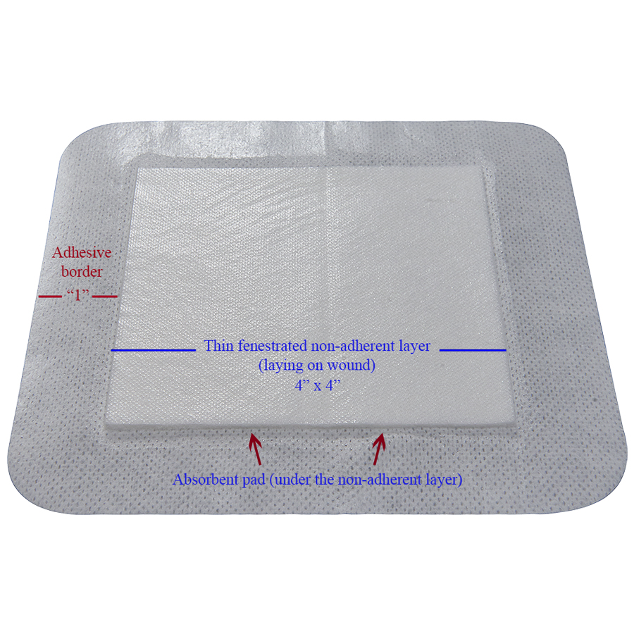 El respaldo del apósito 15cm x 15cm (6″ x 6″) está hecho de poliuretano y tela Spunlace y está cubierto con adhesivos. La capa no adherente que da a la herida proporciona a este apósito la capacidad única de usarse en heridas con exudado mínimo. Este apósito adaptable puede reducir el riesgo de daño físico y contaminación bacteriana de las heridas. Los apósitos se envasan individualmente y son estériles.