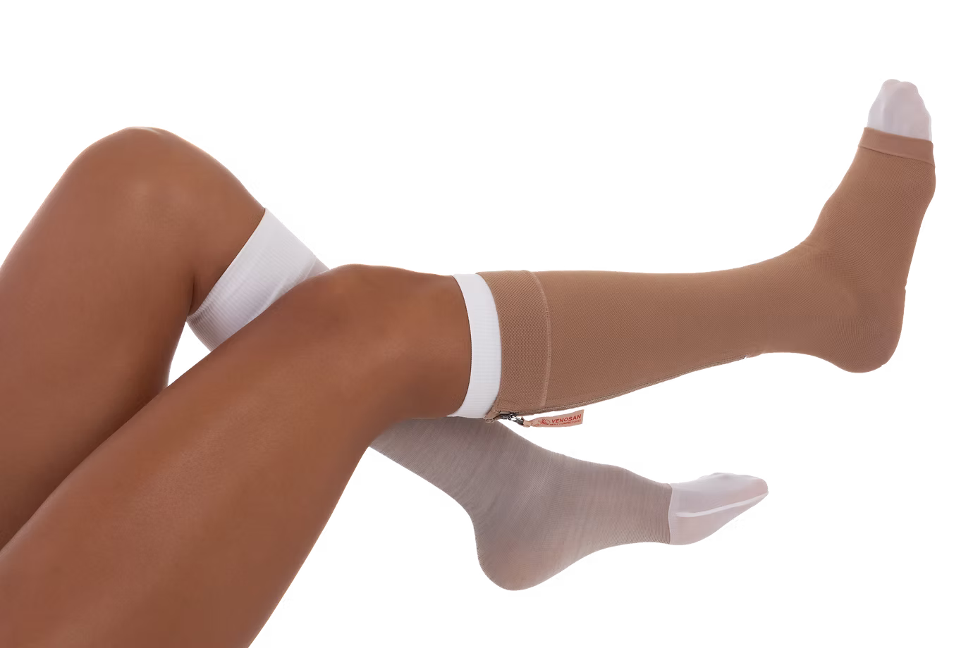 IMPORTANTE: Las medias compresivas están contraindicadas en la mayor parte de los casos de Pie diabético. Si padece de diabetes, favor de consultar a su médico antes de utilizar cualquier prenda compresiva.
